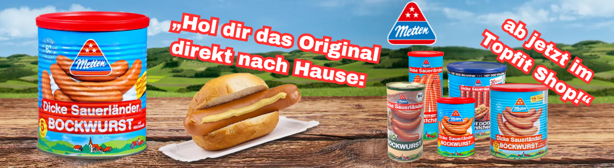 TopFit.com ist seit über 20 Jahren Ihr zuverlässiger Partner im Bereich der Sportnahrung. Bereits in den 80er Jahren - zu Zeiten der Trainingsforschung - waren Produkte wie Cartila-Nahrung, M100, Herc oder S 55 aufgrund höchster Qualität und Effektivität sehr beliebt. Heute - als ProVista AG - haben wir unser Sortiment stetig um ausgewählte Marken und moderne Supplements erweitert. So bieten wir verschiedene Jerky Produkte sowohl als konventionelle Fleischprodukte als auch in der veganen Variante an. Hinzu kommen die Topmarken 'Metten Dicke Sauerländer' und die 'Sommerwurst' von Reinert. ProVista Bio und ProVista Cartila sind bekannte Marken unserer eigenen Produktion. Viel Spass beim Stöbern und sollten Sie Fragen haben, stehen wir Ihnen gerne online, aber auch telefonisch, zur Verfügung.